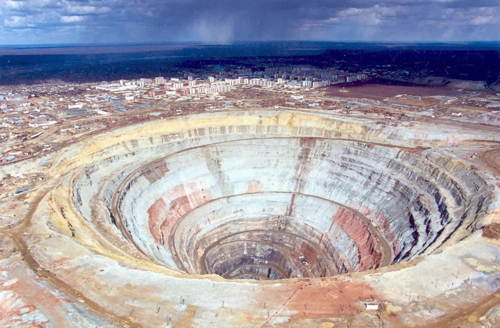 Both methods require tons of debris to be removed using heavy machinery and explosives, which permanently disfigures the Earth. Additionally, when sediment and erosion from kimberlite pipes cause diamonds to accumulate, entire lakes may be drained, and rivers can be rerouted.